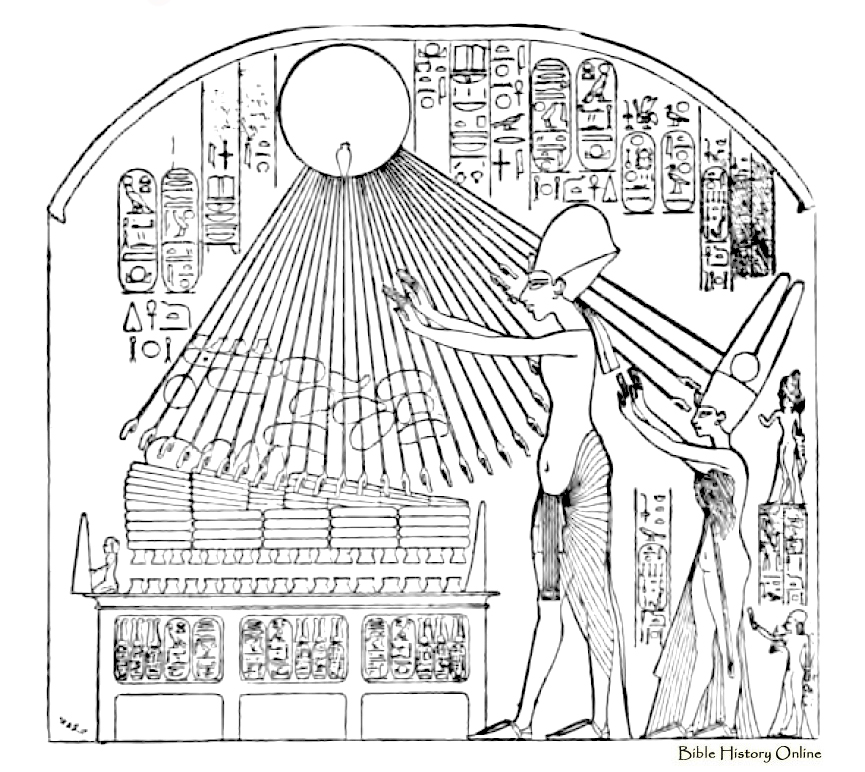 Khu-en-aten worshiping the solar disk.
