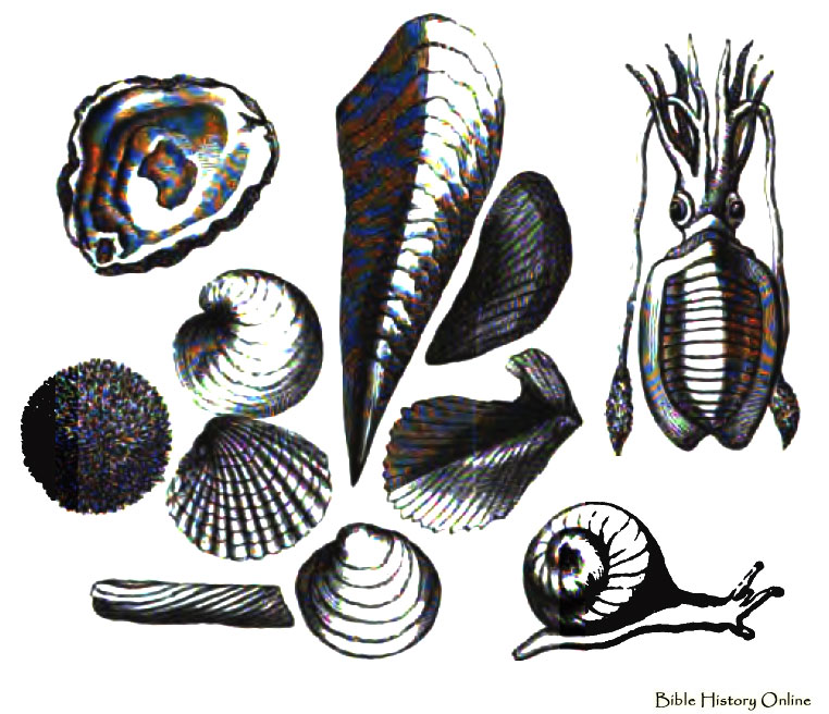 Illustration of various kinds of shell-fish eaten in the Levant during ancient times.
