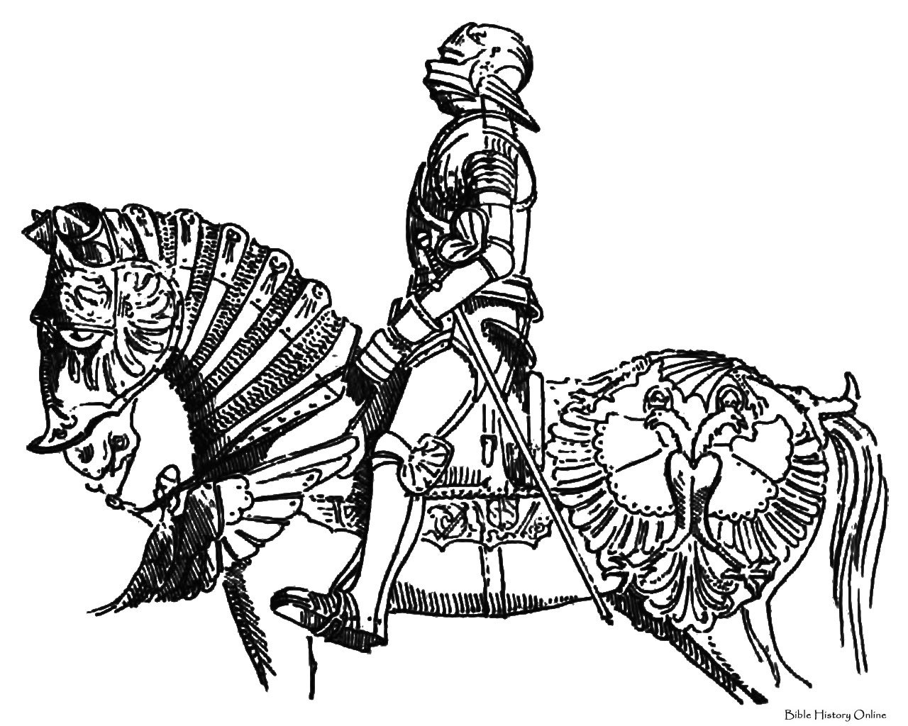 Armor of man and horse, attributed to Maximilian I born in 1459 died in 1519. The cuisses, greaves, solerets and arm-guards do not properly belong to the suit but are of the 16th century. The salade has a movable vizor and a laminated chin-piece. From Ambras Collection.